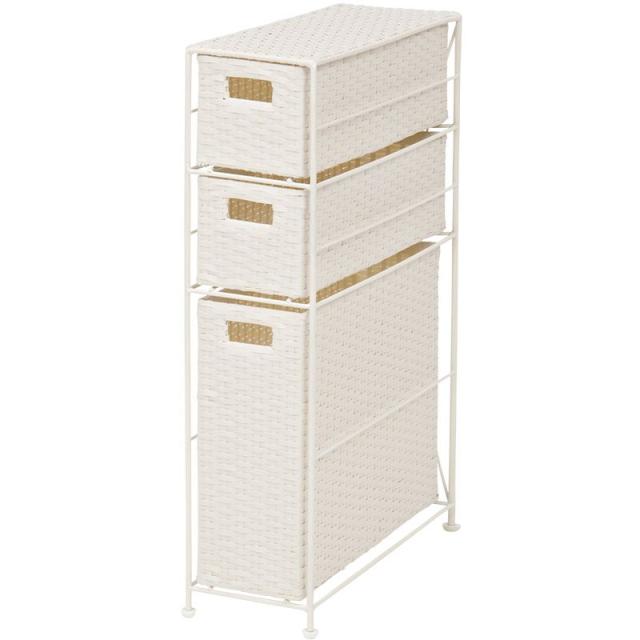 隙間に収まるトイレラック。通気性の良いバスケットの引出しにペーパーロールや小物を収納できます。