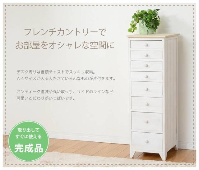 シャビーホワイトの本体にアンティーク調ナチュラルな天板が映える、シンプルチェスト。