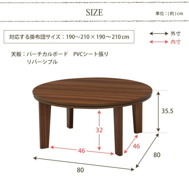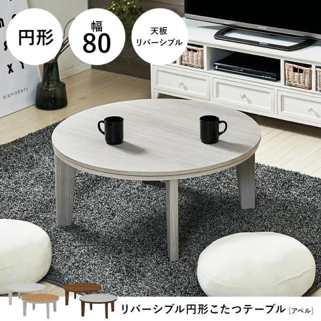 カジュアルコタツ アベルSE80丸 こたつ 丸形 円形 80cm リビングテーブル 木目 ローテーブル コタツ コンパクト リバーシブル オールシーズン 一人暮らし おしゃれ 北欧