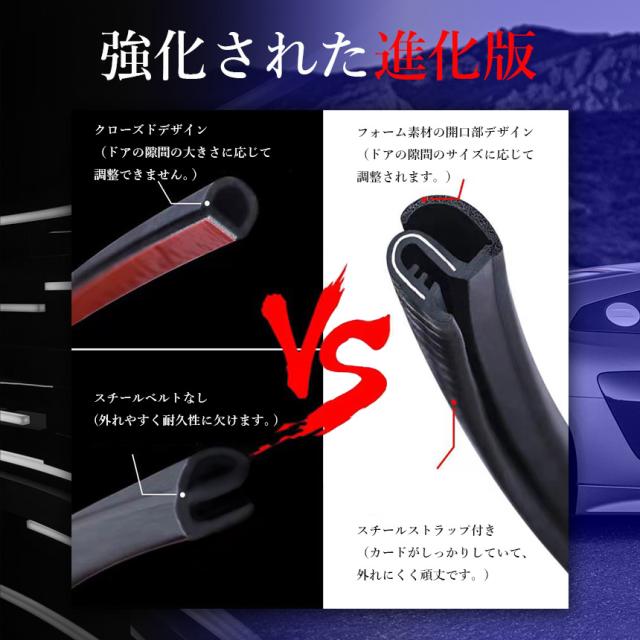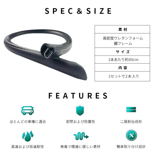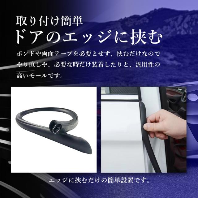 挟むだけ!風切り音低減モール!・1セットで2本入り(両ドア分)【糊も両面もいらない特殊設計】内蔵された鋼フレームにより、両面テープなど使わず挟み込むだけで取れにくく取り付けできます。糊あとを気にせず、また、やり直しも簡単にできます。【風切り音軽減】走行中発生してしまう風切り音を軽減。また、防塵・浸水の軽減の役割も果たしてくれます。