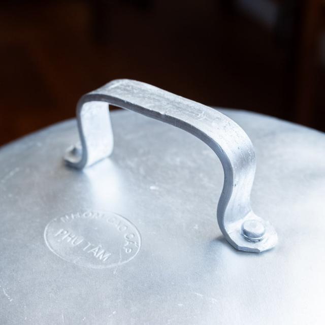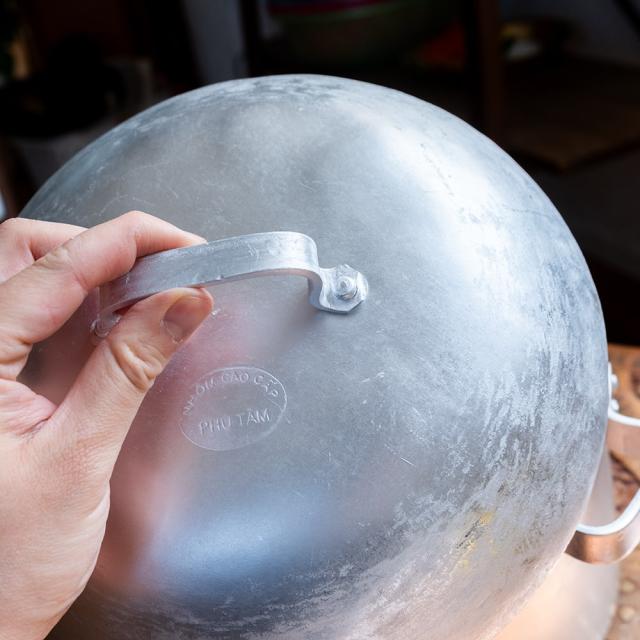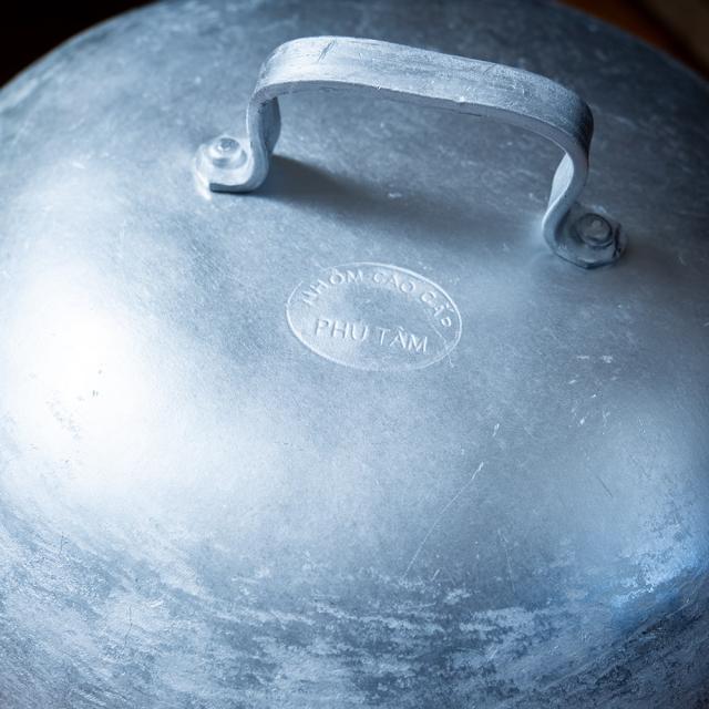 縁まで水を入れた際の容量は約6リットル。ライスペーパーを蒸す以外にも、もちろん通常の鍋としてさまざまなお料理に活用できます。フォーやベトナム風のスープ、鶏粥「チャオ」、和風の煮込みや鍋物まで、幅広く対応。アルミは熱まわりがよく軽量なので、日々の調理に便利な相棒となってくれます。高さのある丸蓋は蒸気をしっかり閉じ込め、旨味を逃しません。