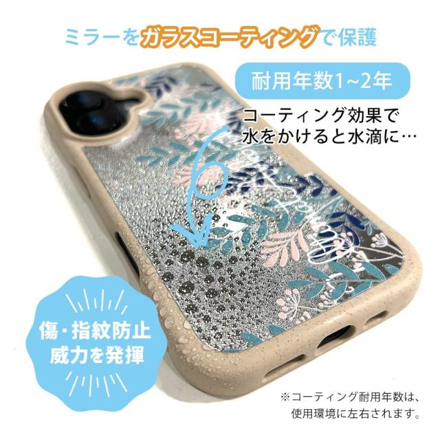 | 特 徴 | 自分だけのオリジナルデザインをいつも手元に。環境にも優しい実用的ミラー付きスマホケースです。「ちょっと鏡を見たいな」と思ったその瞬間に、サッと取り出せる便利なミラー付きスマホケースで、背面に施されたミラーは指紋がつきにくく、ガラスコーティングで美しさが長持ちします。 |