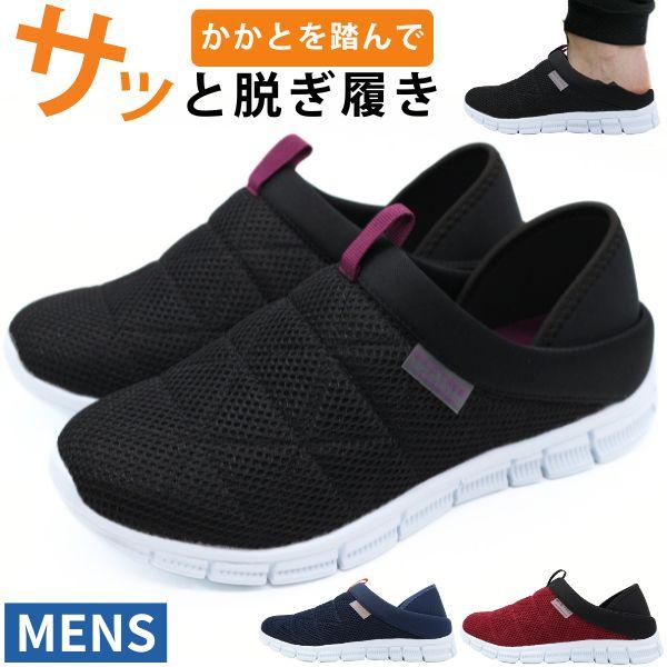 スリッポン メンズ スニーカー 靴 サンダル かかとが踏める 2way 軽い 軽量 黒 ブラック グレー ネイビー 通気性 メッシュ 仕事 室内履き 厚底 紳士靴 サボサンダル かかとなし カジュアル おしゃれ WILD TREE AK5277