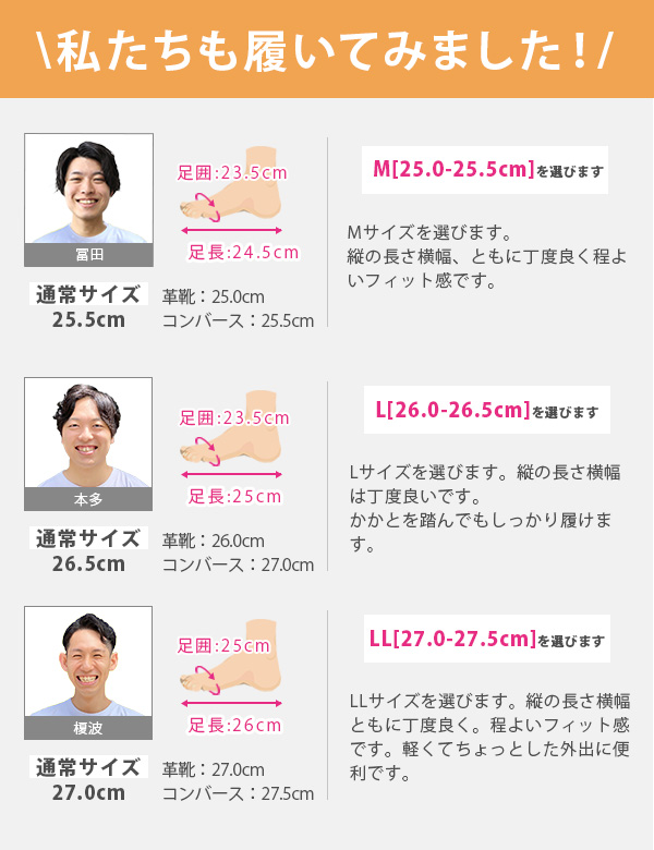 取り扱いサイズ:M[25-25.5cm] L[26-26.5cm] LL[27-27.5cm]