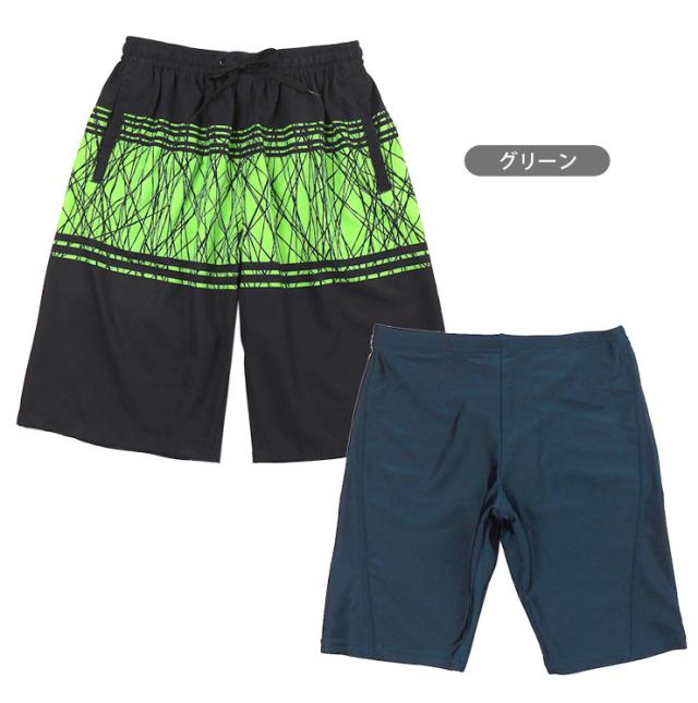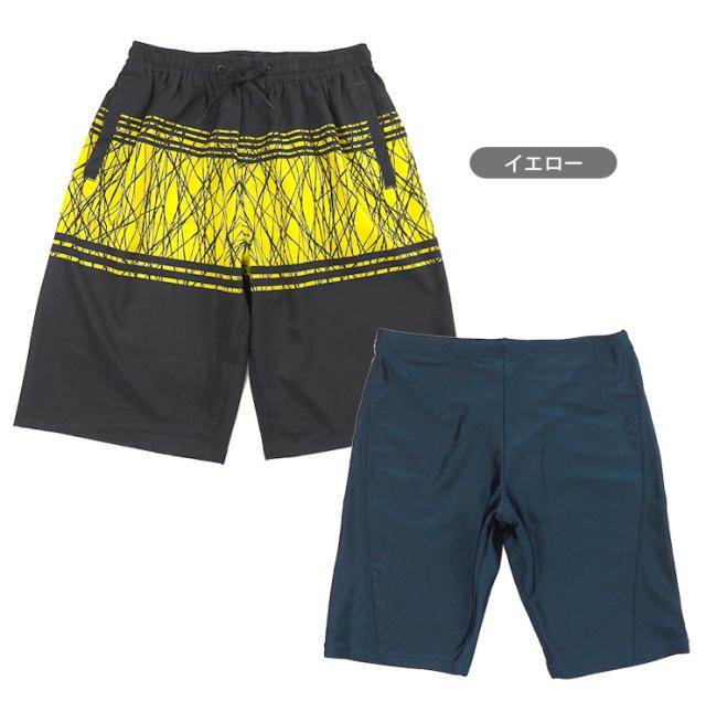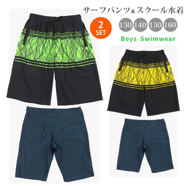 【メール便送料無料】サーフパンツ スクール水着 2枚セット キッズ ジュニア 130 140 150 160 グリーン イエロー 37251802 セットアップ スイムパンツ 男の子 男児 海水パンツ 海パン トランクス 短パン スク水 スパッツ 裏地付 インナーパンツ ブラック ネイビー sw3629