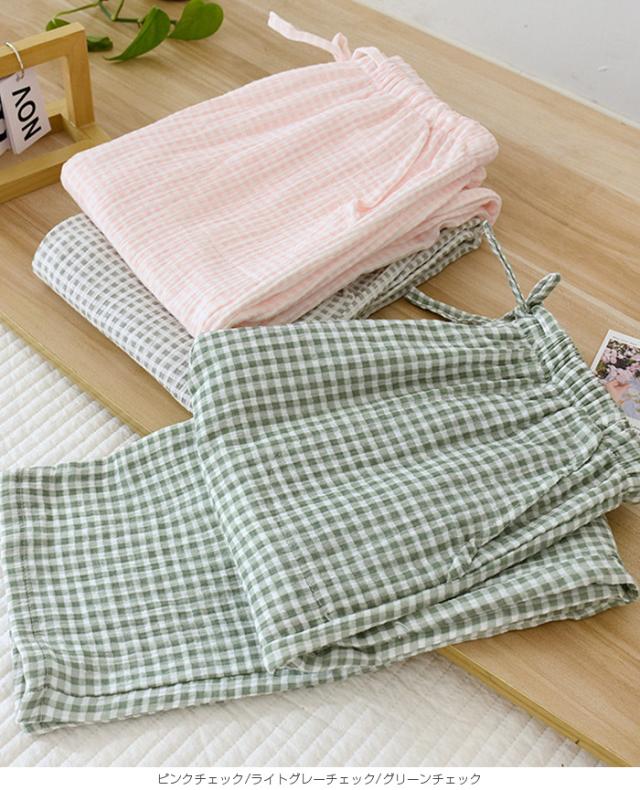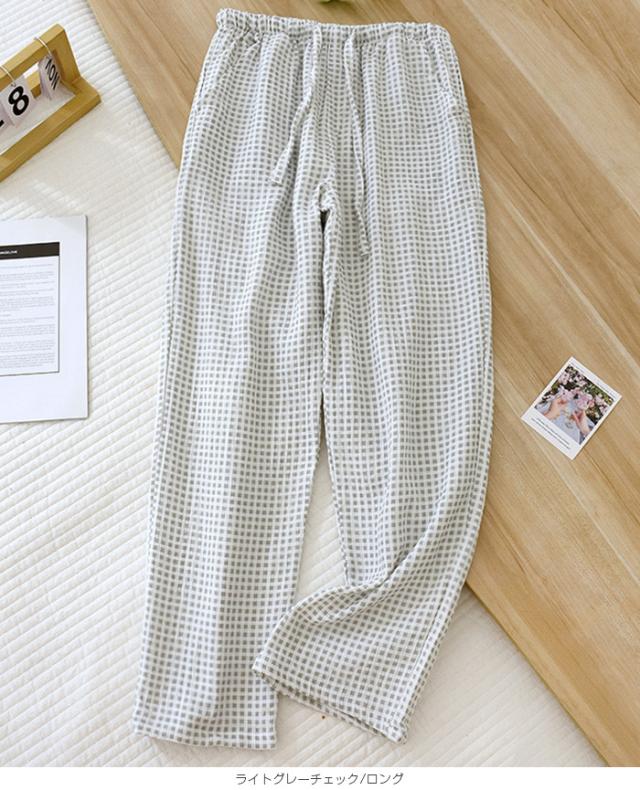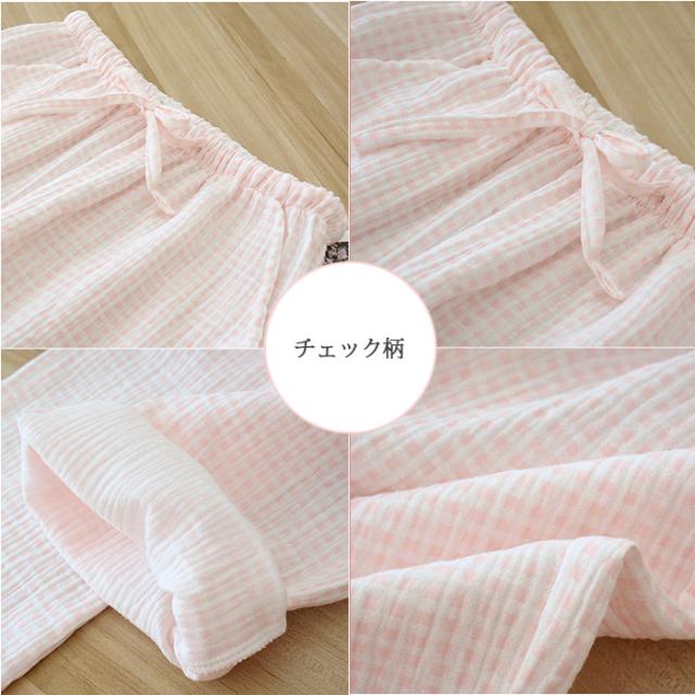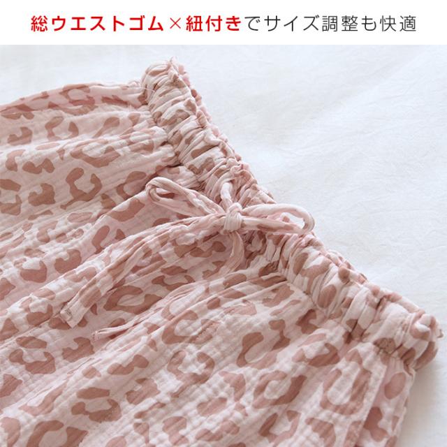 毎日着たくなる、綿100%のやさしい肌ざわり。 おうち日々をもっと快適にするために、 素材からこだわったダブルガーゼのルームパンツ。 通気性・吸水性に優れた綿100%で、 暑い日でもベタつかず、ふんわり軽い着心地を叶えます。 ウエストは楽ちん総ゴム&紐付きで、 お腹を締め付けずリラックス。 便利なポケットも両サイドに配置 。 ハート柄・レオパード柄・チェック柄の3種×豊富なカラバリで、 毎日の気分に合わせてチョイスできます。 ナチュラルかわいいルームウェアとしても、 ちょっとした外出にも◎ 《商品ポイント》 綿100%&ダブルガーゼ素材で通気性・吸湿性抜群 総ウエストゴム×紐付きでサイズ調整も快適 両サイドポケット付きで機能性◎ 春夏秋対応のさらりと軽やかな着心地 《デザイン・シルエット》 ゆったりとしたリラックス感のあるワイドシルエットで、体型カバーもおまかせ。 ガーゼの優しい風合いが女性らしさをプラスし、カジュアルになりすぎないのも嬉しいポイント。 《デザイン・シルエット》 ゆったりとしたリラックス感のあるワイドシルエットで、体型カバーもおまかせ。 ガーゼの優しい風合いが女性らしさをプラスし、カジュアルになりすぎないのも嬉しいポイント。 《コーディネート提案》 同素材のガーゼシャツやTシャツと合わせて、おしゃれなルームセットアップに。 タンクトップやブラトップと合わせて、夏のナイトルックにもおすすめ。 ロングカーディガンやシャツワンピと重ねれば、ちょっとした外出着にも活躍。 《サイズ・カラーバリエーション》 サイズ:M/L/XL カラー:ピンクレオパード/クリームレオパード ピンクチェック/グリーンチェック/ライトグレーチェック クリームハート/ブルーハート/ピンクハート/パープルハート 《素材・機能性》 ・素材:コットン100% ・透け感:ホワイト・浅い色のみあり ・伸縮性:なし ・厚み:薄手(春〜秋に◎) |