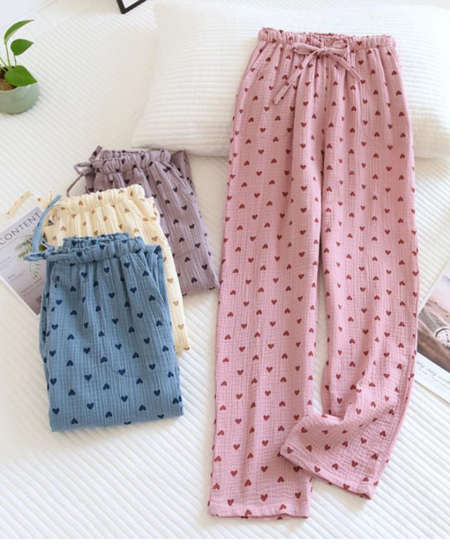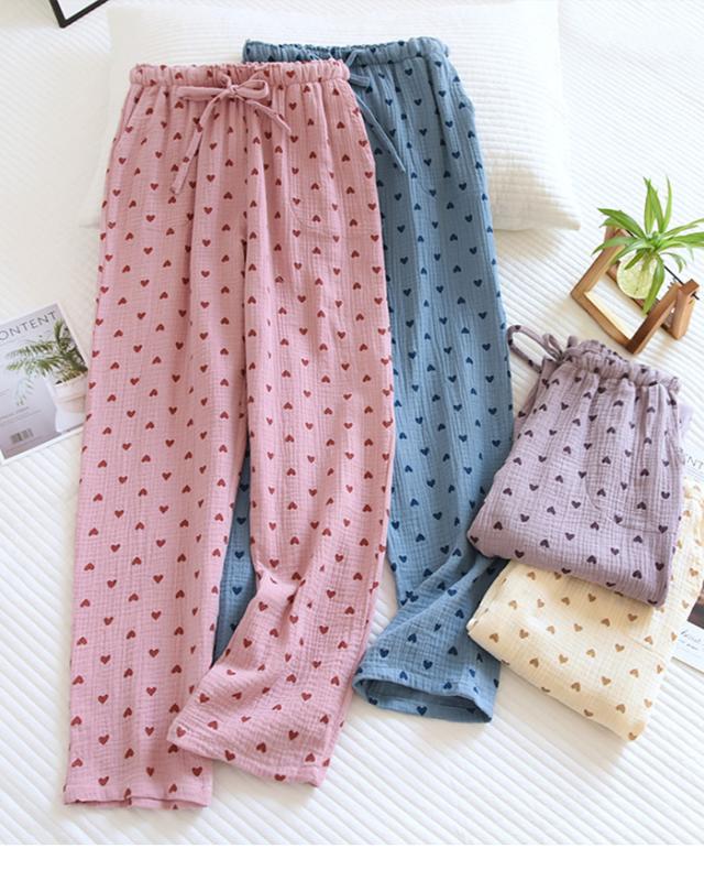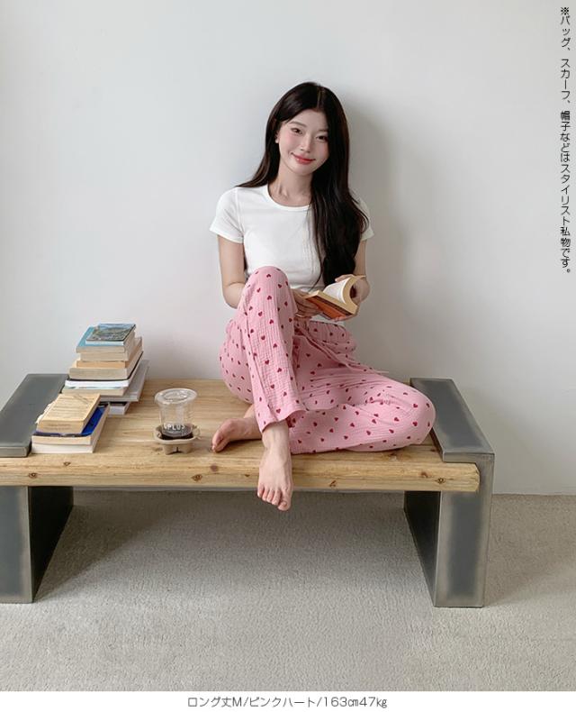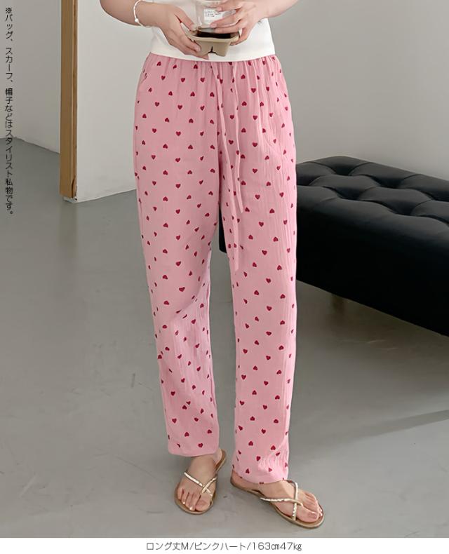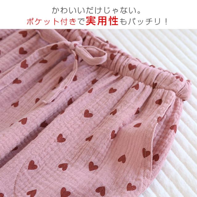 20%OFFクーポン!綿100% パンツ ルームパンツ パジャマ レディース ポケット付き 春夏秋 綿 薄手 かわいい 部屋着 ハート柄 チェック ヒョウ柄 ロングパンツ 涼しい 薄手 ウエストゴム ゆったり 秋新作