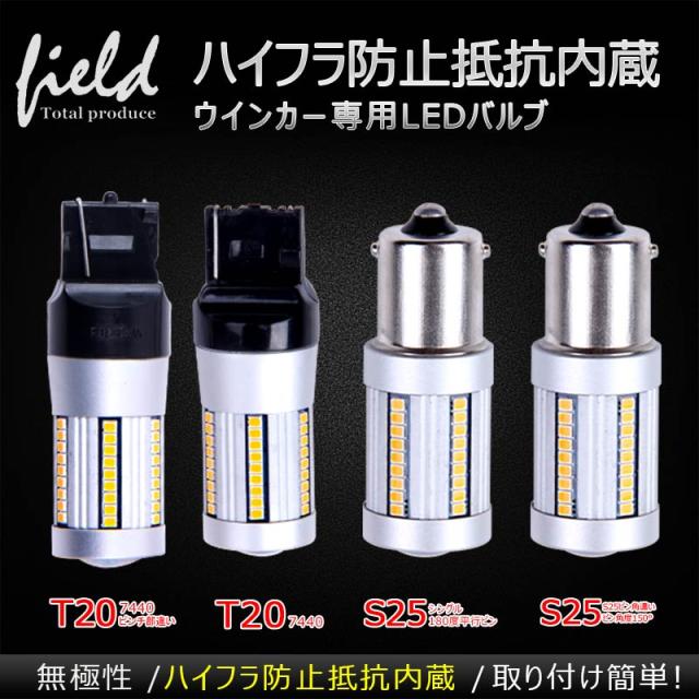 LEDウインカーバルブ ハイフラ防止抵抗内蔵T20ピンチ部違い T20シングル S25 150°ピン角違い 180° LEDシングル球 キャンセラー内蔵 ハイブリッド車にも対応 LEDウインカーバルブ 無極性 アンバー 7440 W3×16d WX3×16d
