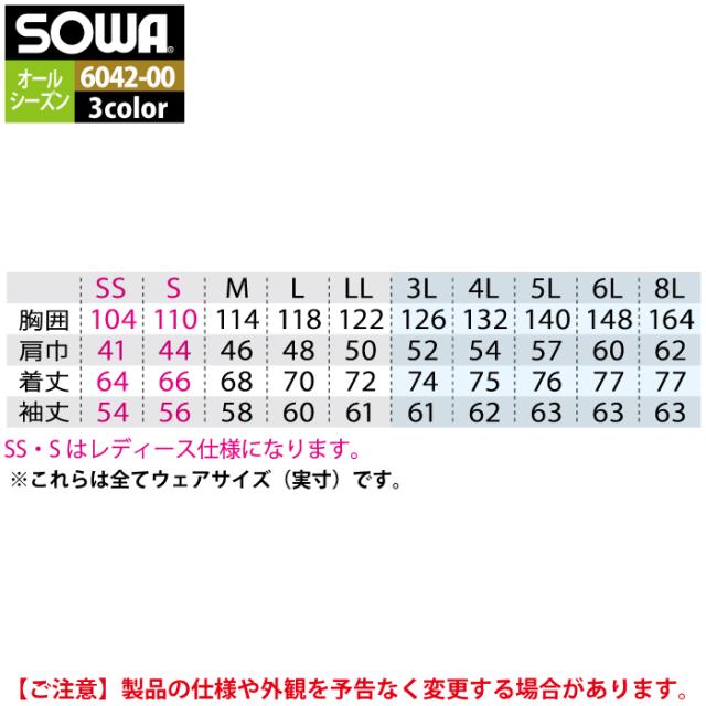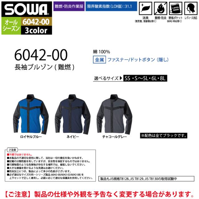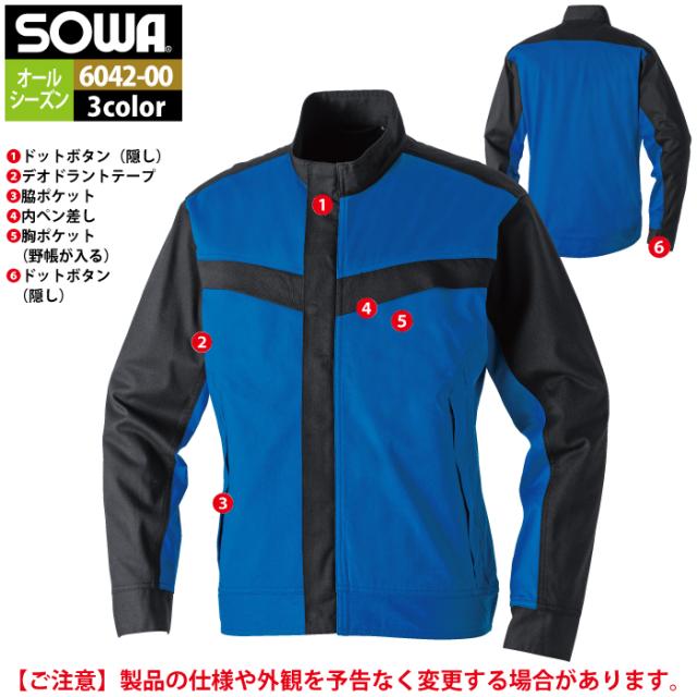 桑和 SOWA 作業服 6042-00 長袖ブルゾン 6L 作業着 春夏