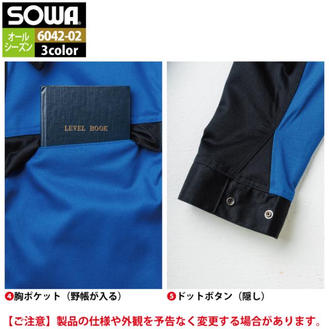 桑和 SOWA 作業服 6042-02 長袖シャツ 3L 作業着 春夏