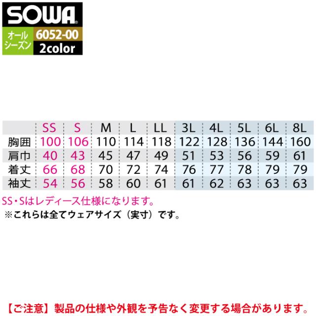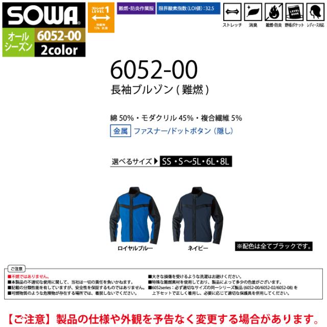 桑和 SOWA 作業服 6052-00 長袖ブルゾン 4L 作業着 春夏