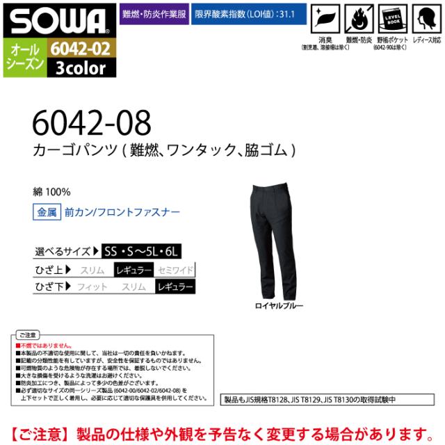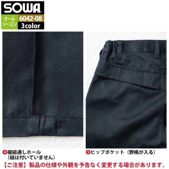 桑和 SOWA 作業服 作業ズボン 6042-08 カーゴパンツ SS-LL 作業着 春夏