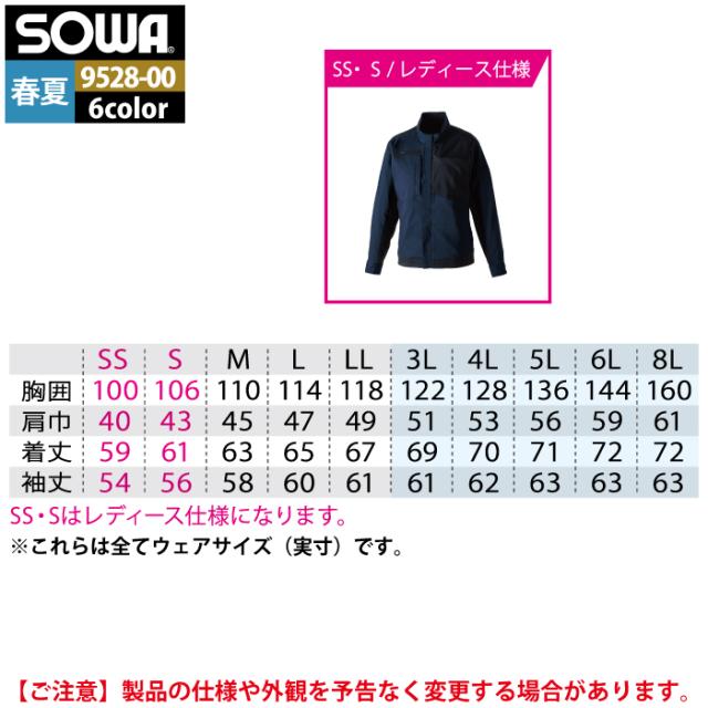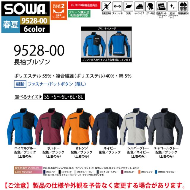 桑和 SOWA 作業服 9528-00 長袖ブルゾン 5L 作業着 春夏