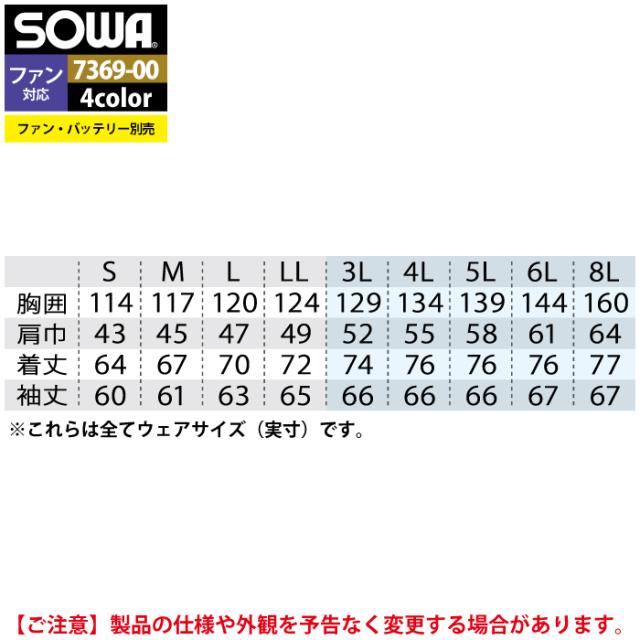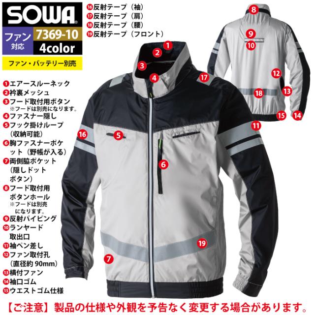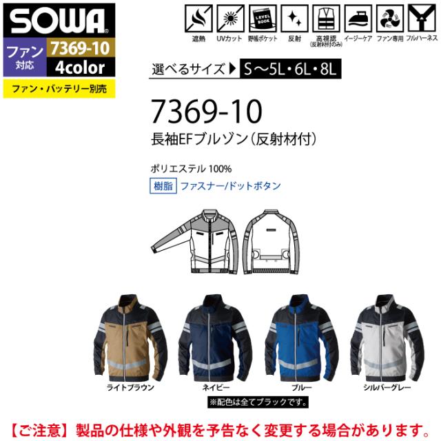 ファン付きウェア(服のみ) 桑和 SOWA 作業服 7369-10 長袖EFブルゾン 6L 作業着 春夏