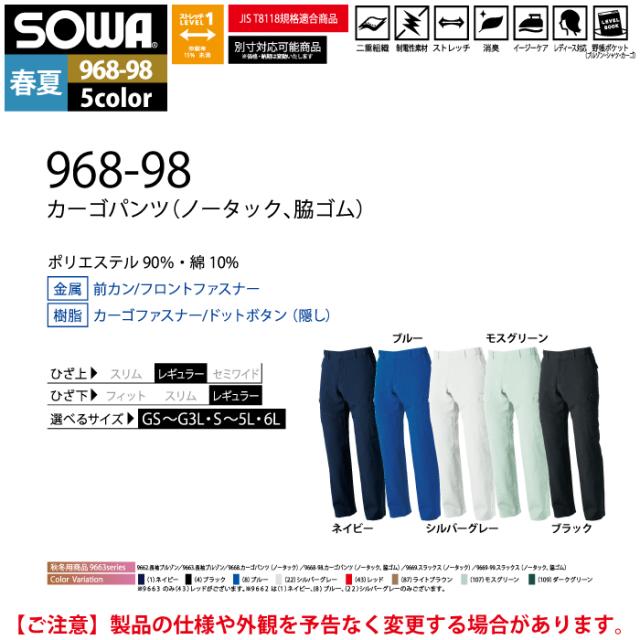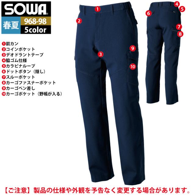 桑和 SOWA 作業服 作業ズボン 968-98 カーゴパンツ 6L 作業着 春夏