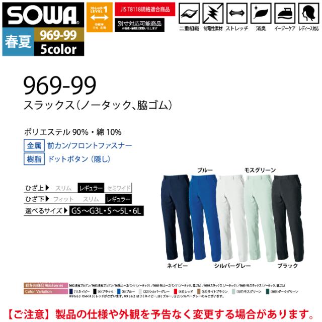 桑和 SOWA 作業服 作業ズボン 969-99 スラックス 4L 作業着 春夏