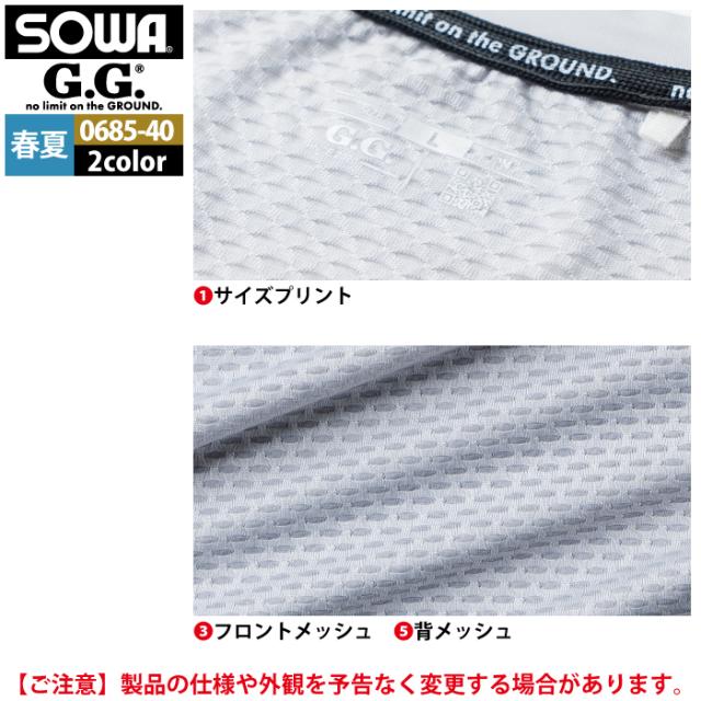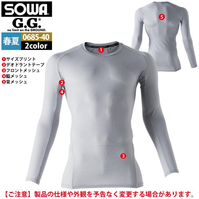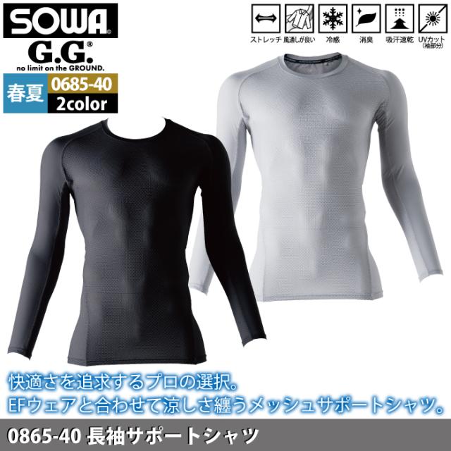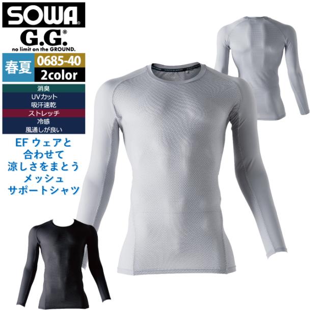 桑和 SOWA 作業服 インナー 0685-40 長袖サポートシャツ 4L 作業着 春夏用