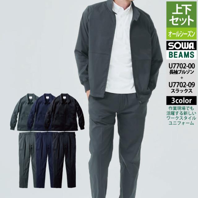 桑和 SOWA 作業服 上下セット U7702-00 長袖ブルゾンS-3L と U7702-09 スラックス S-3L 作業着 作業ズボン オールシーズン