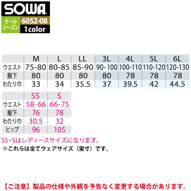 桑和 SOWA 作業服 作業ズボン 6052-08 カーゴパンツ 5L 作業着 春夏