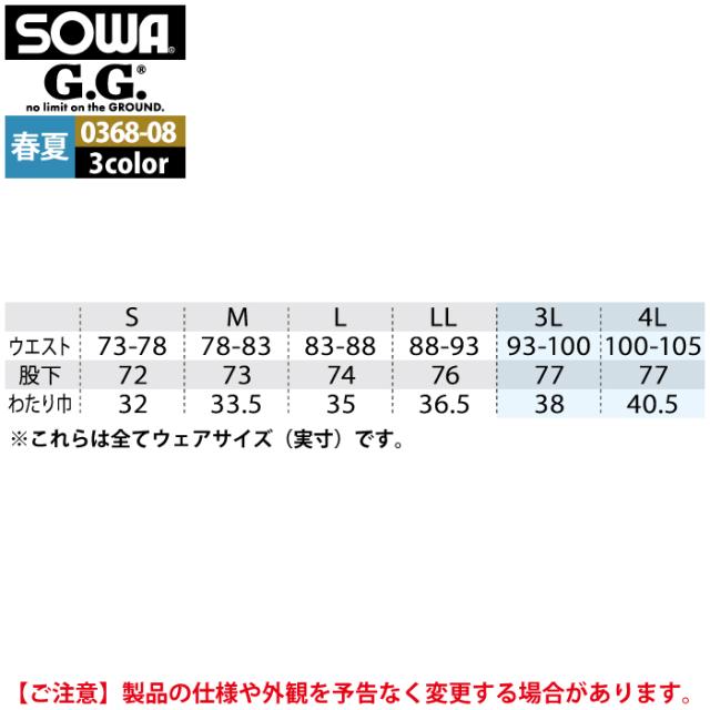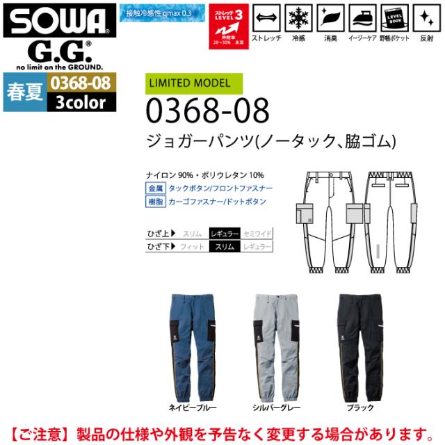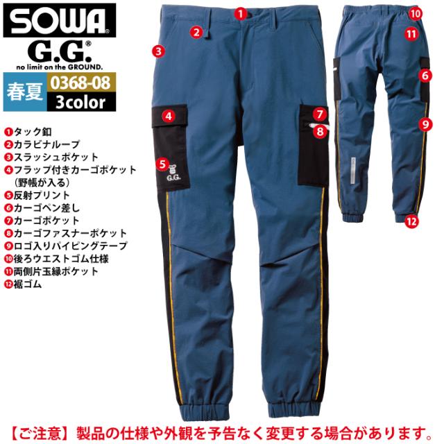桑和 SOWA 作業服 作業ズボン 0368-08 ジョガーパンツ S-LL 作業着 春夏