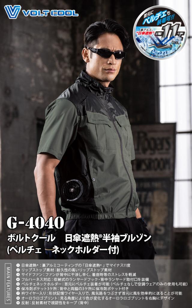 空調風神服 コーコス VOLTCOOL ボルトクール 日傘遮熱半袖ジャケット ペルチェネックホルダー付 G-4040 GP-854/GB-852/GF-856 ペルチェ/ファン/モバイルバッテリーセット フルハーネス対応 サイドファン仕様 春夏作業服