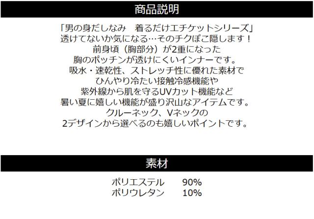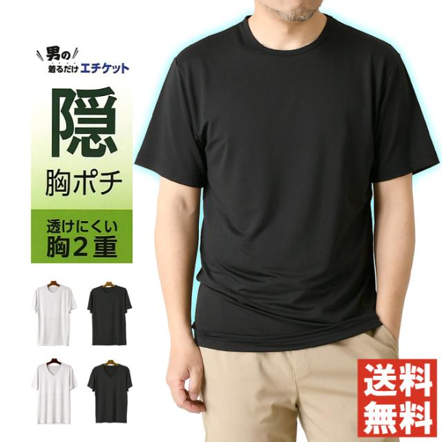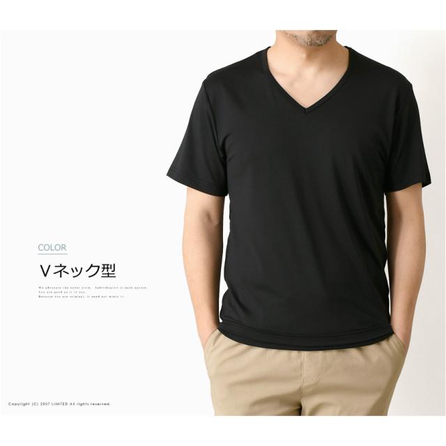 前身2重 乳首が透けにくい インナー メンズ 紳士 半袖 tシャツ チクぽこ隠し 吸水速乾 ストレッチ UVカット クルー Vネック 【D1-1365】 送料無料 通販M15