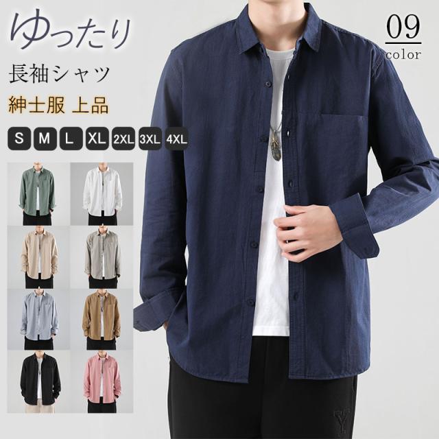 シャツ メンズ 長袖シャツ 綿 カジュアルシャツ ボダンダウンシャツ 春服 トップス 重ね着 ゆったり 無地 通勤 ビジネス 紳士