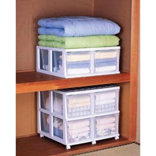 チェスト 押入れ収納 幅74cm 深型 キャスター付き OCD-744(ホワイト/クリア) 1台 アイリスオーヤマ