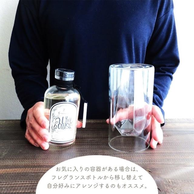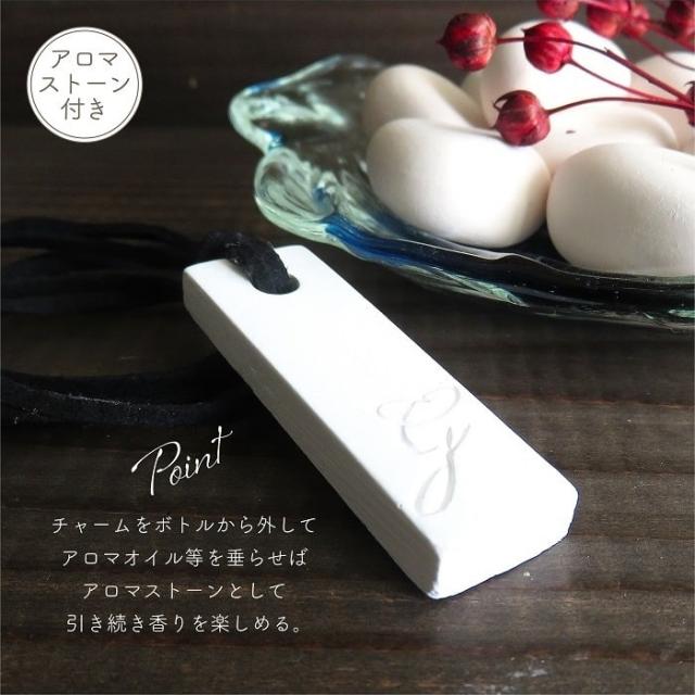 お気に入りの容器がある場合は、フレグランスボトルから移し替えて自分好みにアレンジするのもオススメ。使用後はチャームをボトルから外してアロマオイル等を垂らせばアロマストーンとして引き続き香りを愉しめます。