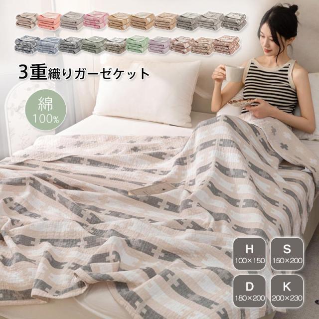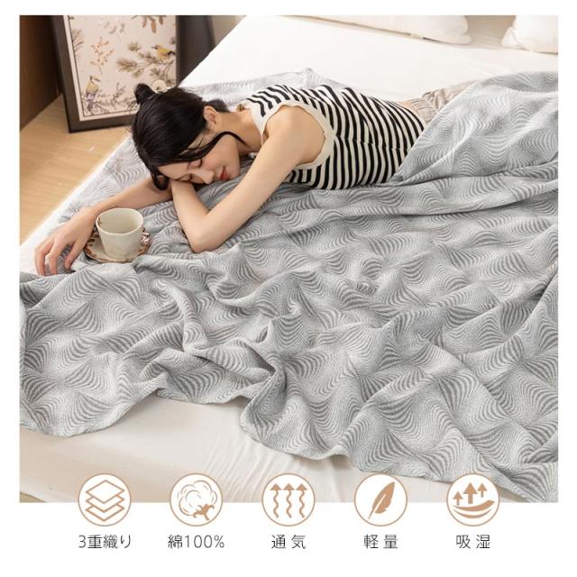 タオルケット 綿100% ブランケット 綿毛布 3重ガーゼ ガーゼケット ふわふわ 肌掛け ハーフ シングル ダブル キング 夏用 吸湿 通気 夏快眠 軽量 コットン やわらか肌触り 肌掛け布団 北欧 オールシーズン 丸洗いOK 100X150cm