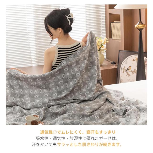 軽いので重苦しいさを感じずに、夏場のエアコンからの冷え予防にもなります。やわらかなガーゼ生地の3枚重ねは生地と生地の間に空気の層を作って適度な温度に保ちます。夏だけでなく、オールシーズンお使いいただけます。