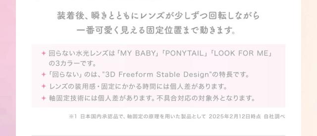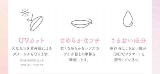 ●コンタクトレンズは目に直接のせて使用するため、少しでも異常を感じた場合はご使用を中止し眼科医へご相談ください。眼のトラブルに関しまして弊社は医療上の責任は一切負いません。ご自身の責任にてご利用ください。