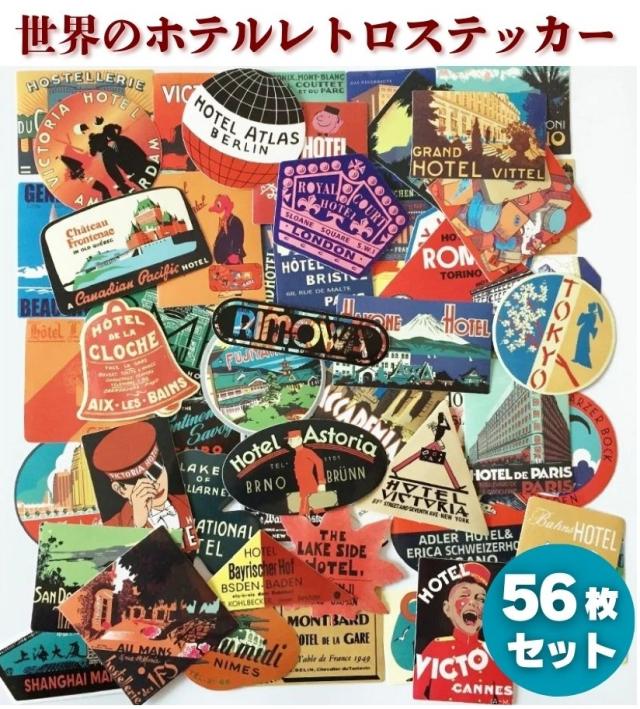 56枚セット 世界のホテル トラベル レトロ ヴィンテージ 防水加工 ステッカー シール