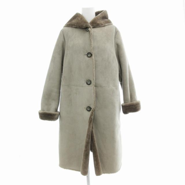 【中古】レイビームス Ray Beams フェイクムートン フーデッドコート ジャケット ロング丈 ボア 1 ベージュ /JS