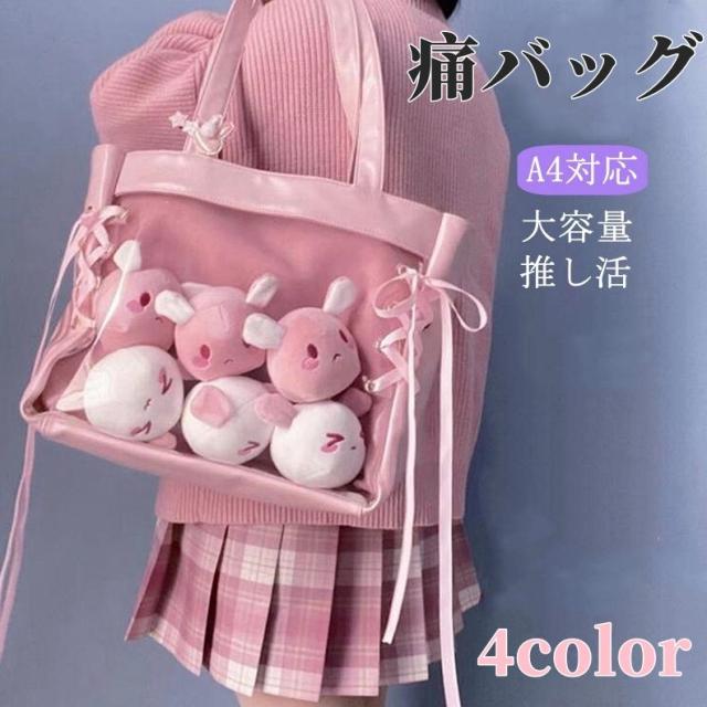 痛バ 可愛い 痛バッグ 学生風 リボン編み上げ トートバッグ A4 トート リボン レースアップ 推しキャラクター KPOP