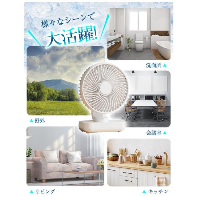 180度折り畳み可能なデザインは、持ち運びや保管時の便利さを考慮しており、スタンド機能によってデスクファンとしても活躍します。