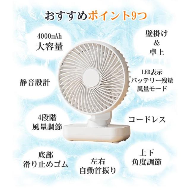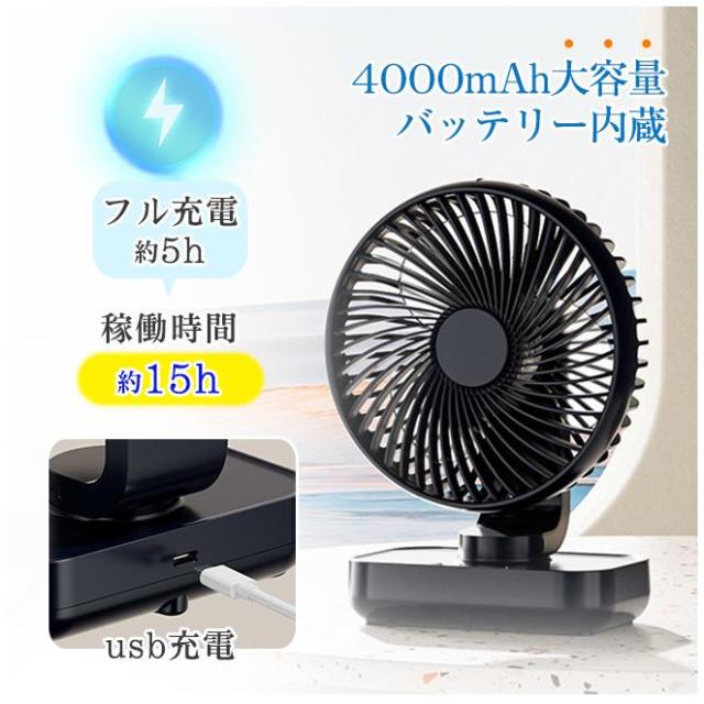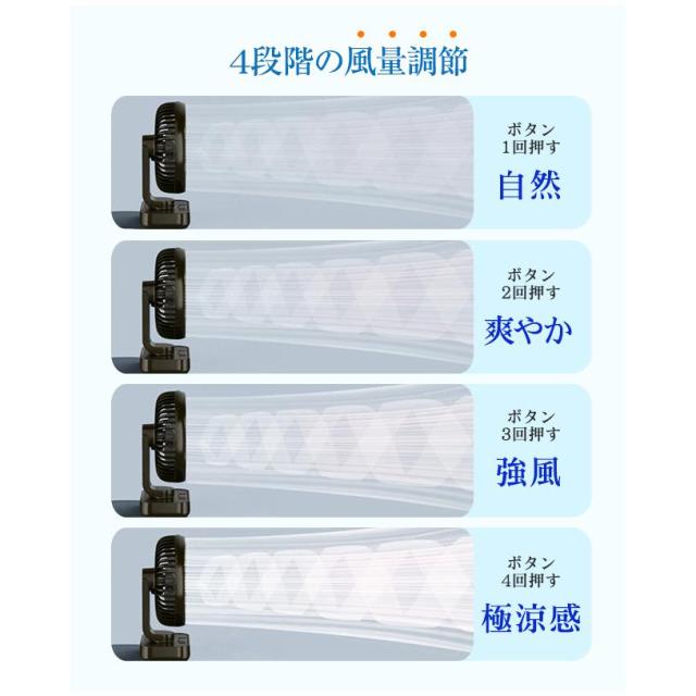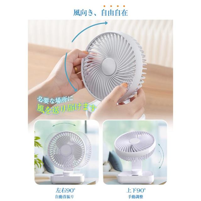 卓上扇風機 首振り 4段階 usb充電 LED表示 大風量 静音 軽量 熱中症対策 ファン 壁掛け リビング 洗面所 キャンプ 部屋 最新型