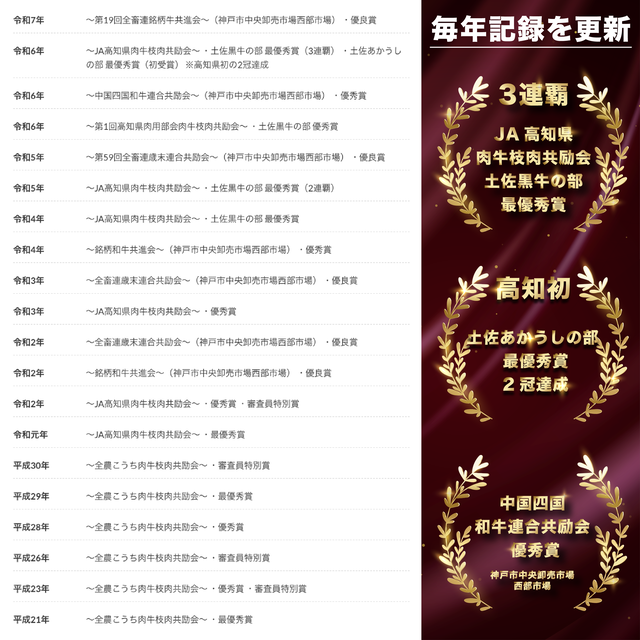メス牛ならではの融点の低い甘くサッパリした脂質が最大の特徴。この脂質の良さが、甘さや口に入れた時のとろける食感につながります。