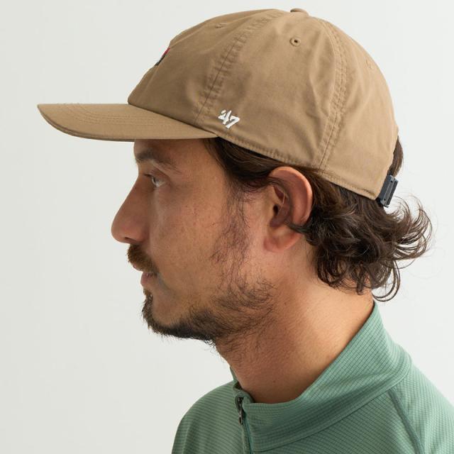 NANGA×'47 HINOC CAP HINOC DOWN JACKETで使用している難燃素材(ポリエステル、アラミド繊維混合)を使用した、火の粉に対して、燃えにくい難燃性が特徴のアイテム。'47定番のクリーンナップMFモデルをベースとした深めのキャップ。