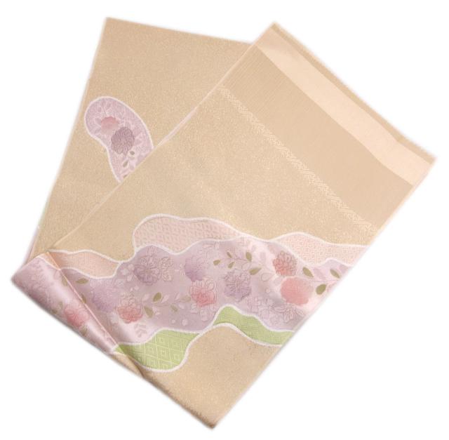帯揚げ 帯上げ 正絹 渋淡橙色地金糸入り辻が花流水 着物 訪問着 色無地 小紋 フォーマル カジュアル 帯あげ きもの シルク 女性用