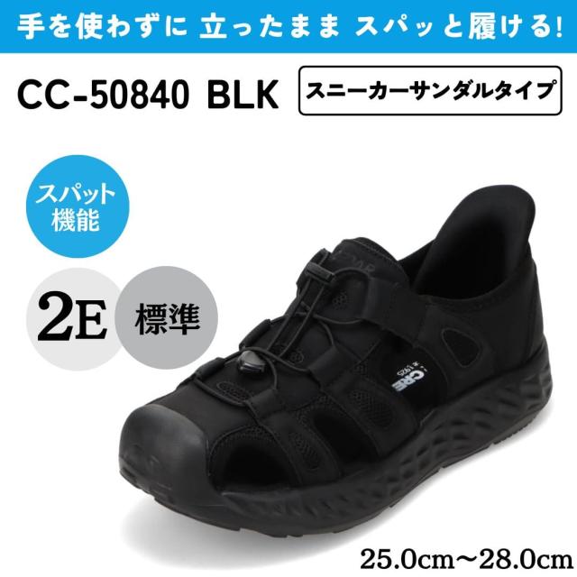 スパットシューズ 手を使わずに履ける メンズ スニーカーサンダル メッシュ 通気性 ムレにくい 夏 カジュアル 涼しい アウトドア キャンプ ローカット スリッポン ハンズフリー 着脱簡単 履きやすい シューズ 靴 ブラック セダークレスト CEDAR CREST CC-50840