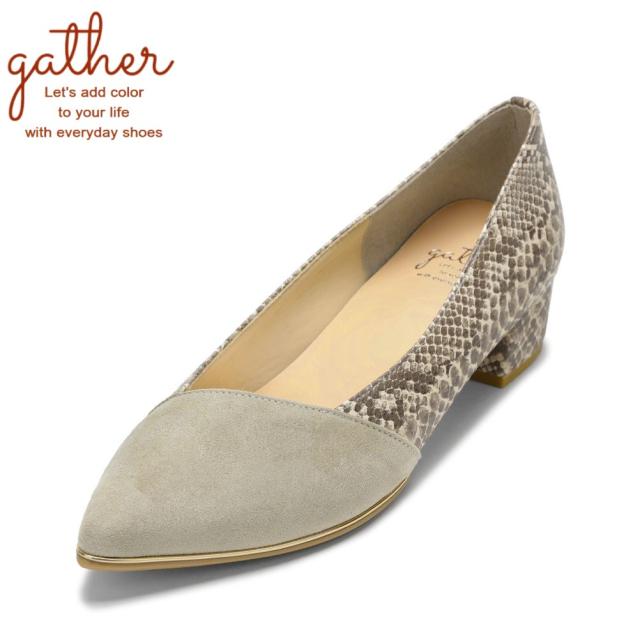 ギャザー gather G-018 レディース靴 靴 シューズ 2E ポインテッドトゥパンプス パイソン柄 レオパード ビジネス オフィス 通勤 セレモニー スタイリッシュ モード ライトグレー