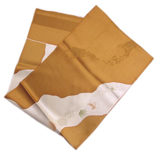 帯揚げ 帯上げ 正絹 金茶色地金糸入り古典花流水 着物 訪問着 色無地 小紋 フォーマル カジュアル 帯あげ きもの シルク 女性用