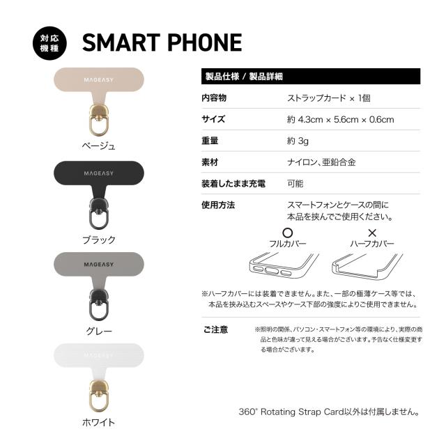 ストラップホルダー 360度 回転 厚さ 0.5mm 耐久性 フィット感 装着したまま 充電 可 挟むだけ 切れない ストラップ ホルダー [ 斜めがけ 首掛け 肩掛け スマホショルダー 各種 対応 ] MagEasy 360° Rotating Strap Card