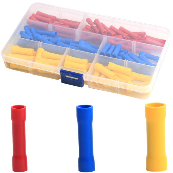 1.セット内容:絶縁圧着端子120個(赤色BV 1.25:45個、青色BV 2:45個、黄色BV 5.5:30個)、サイズ:18 cm10.5 cm2.3 cm。