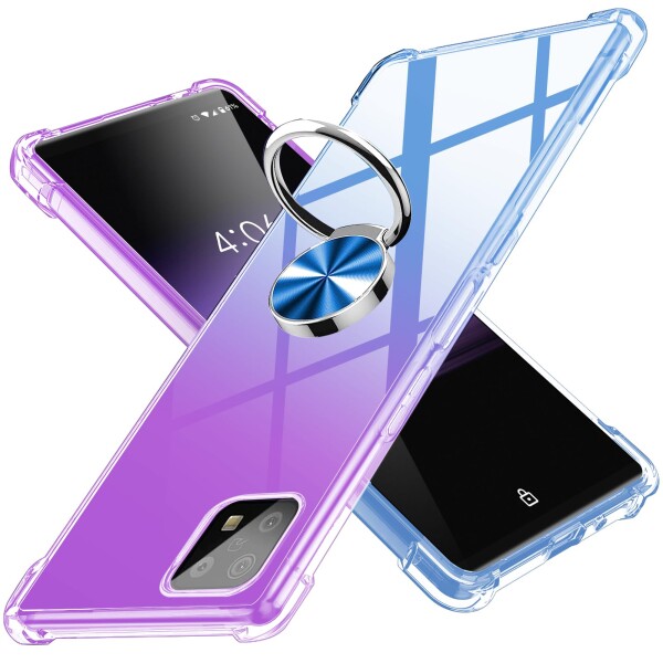 CQTMYWL 対応 AQUOS sense6 用の ケース リング付き クリア透明 TPU 耐衝撃 SH-54B SHG05 カバー 指紋防止 360°回転 黄変防止 薄型 米軍MIL規格 車載ホルダー対応 携帯カバー TPU 擦り傷防止 紫/ブルー