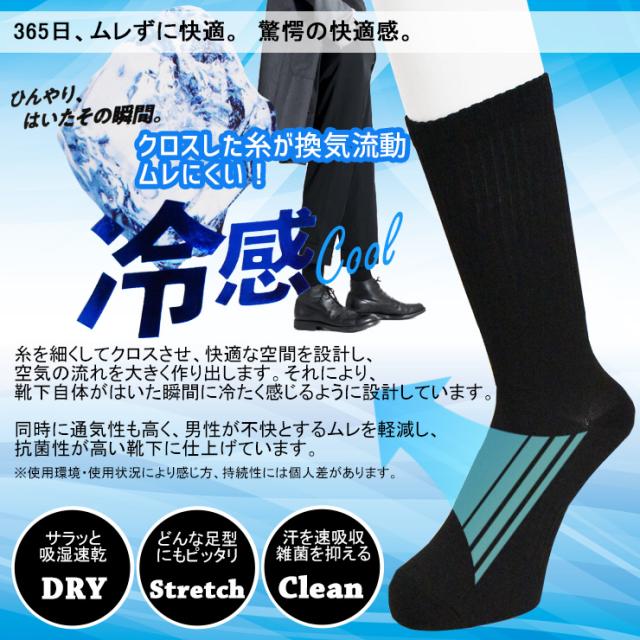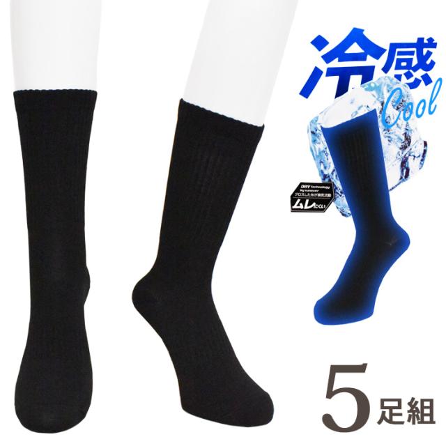 靴下 メンズ 夏用 冷感 cool クルー丈 5PBZ01 5足組 送料無料 ビジネスソックス ブラック 黒 紳士靴下 サマーソックス 涼しい 吸水速乾 ドライ 接触冷感 クルーソックス 25cm 26cm 27cm(06721)