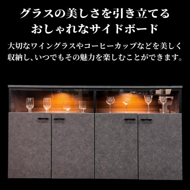 開梱設置無料 幅155cm 奥行40cm 高さ87cm 完成品 サイドボード 国産 琉月 【 コレクションケース グラス収納 ワイングラス収納 飾り棚 ワインラック コーヒーカップ 収納棚 ガラスケース バーカウンター収納 収納ケース LEDライト付き