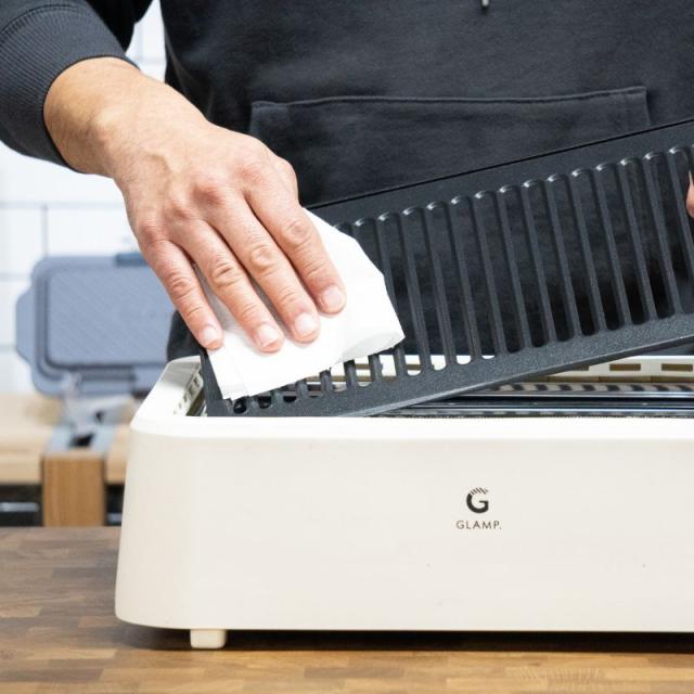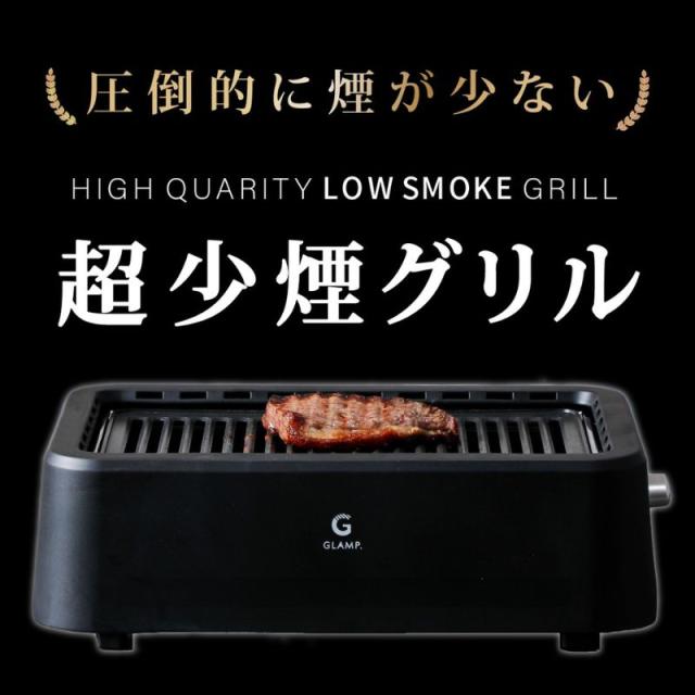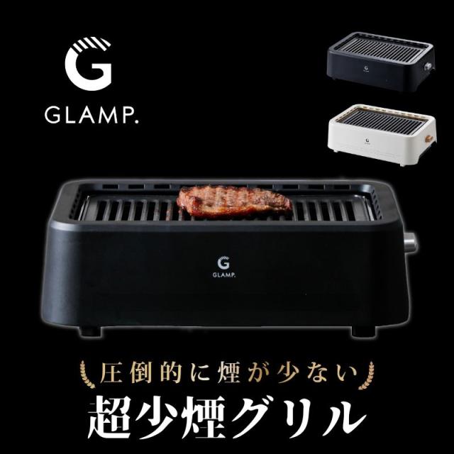 \シリコンマットプレゼント中/ GLAMP グランプ 超少煙グリル ほぼ無煙ロースター お家BBQが楽しめる1200Wの遠赤外線グリル 驚くほど脂が落ちてヘルシー 七輪のような遠赤外線効果で食材を均一に焼き上げる ファンレスで静音 肉 野菜 焼き鳥 焼き魚 焼きいも調理に