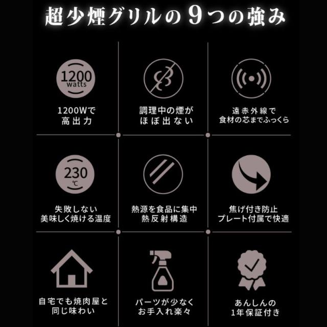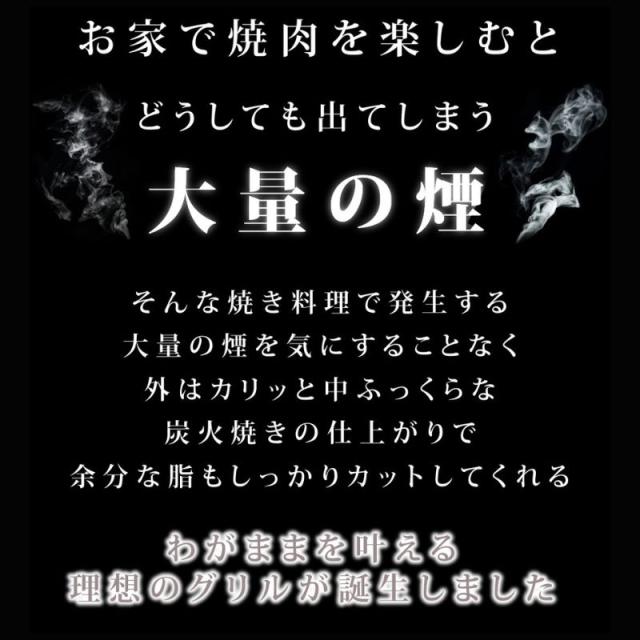 ほぼ無煙ロースターの超少煙グリル サイドヒーティングシステムで熱源に食材や脂が当たらず煙を無効化 お家BBQを実現 1200W 遠赤外線グリルで驚くほど脂が落ちてヘルシー